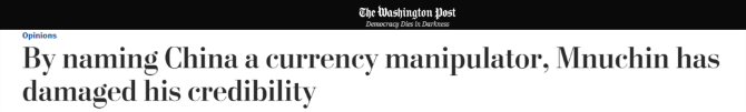 華盛頓郵報(bào):宣稱(chēng)中國(guó)是“匯率操縱國(guó)”,姆努欽損害了自己的信譽(yù)