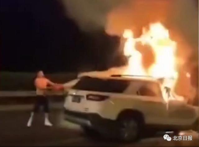 “第一個車載滅火器,只噴了10秒就用光了?!迸留斂嘶貞洠拔遗艿铰愤吶r過往的車輛,有個司機(jī)停下來,把車上的滅火器遞給了我,但也只噴了大約10秒?!?/span>