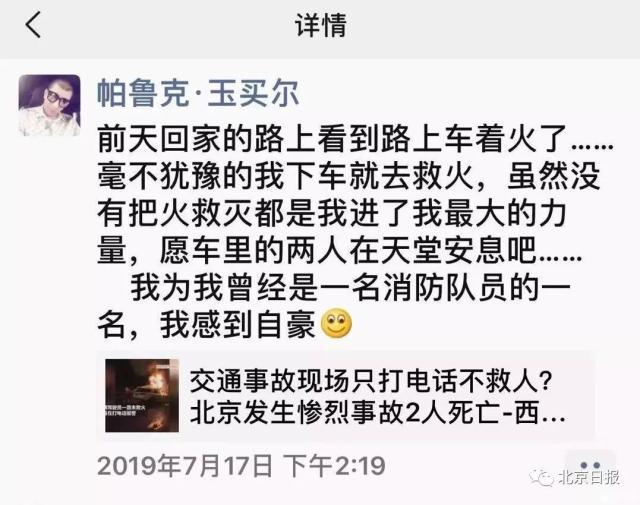 回憶起半月前在北京南四環(huán)車禍中救火時的經(jīng)歷,帕魯克對北京日報客戶端記者如此說道。