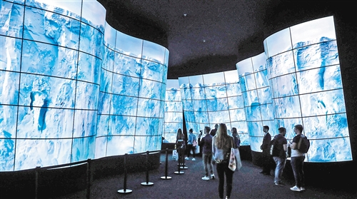 參觀者在第58屆柏林國際消費電子展上體驗柔性O(shè)LED電視。(新華社發(fā))