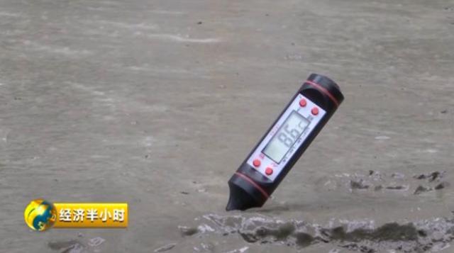在施工現(xiàn)場,央視財經《經濟半小時》記者看到,混凝土的顯示溫度為7.1度,而這時的大氣溫度是29度。