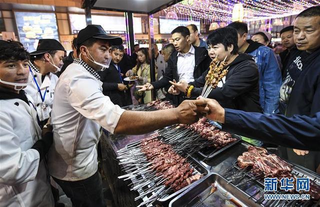 在烏魯木齊五一星光夜市,人們排隊(duì)購買烤羊肉串等美食(5月6日攝)。新華社記者王菲攝