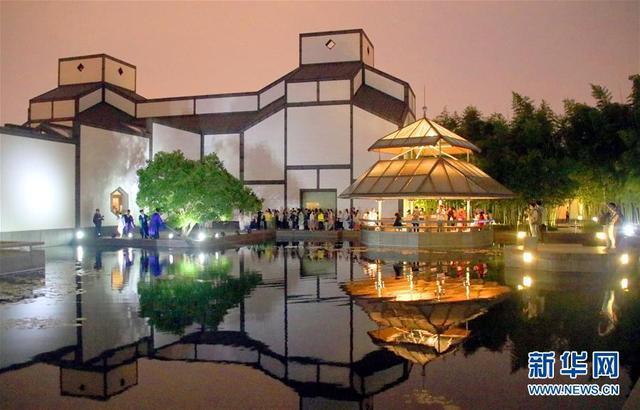 人們在江蘇蘇州博物館舉行的博物館奇妙夜開放活動(dòng)中參觀游覽(5月18日攝)。新華社發(fā)(王建康 攝)