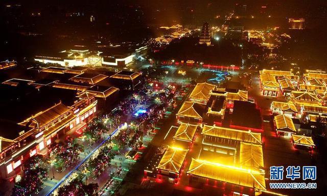 西安市曲江大唐不夜城夜景(8月8日無人機(jī)拍攝)。新華社記者劉瀟攝