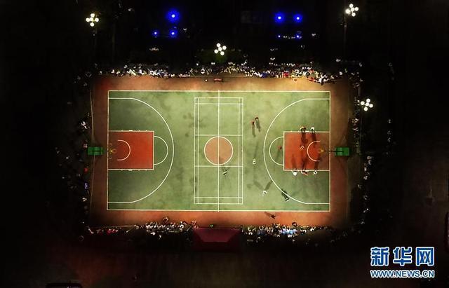 人們在重慶市豐都縣都督鄉(xiāng)觀看“都督杯”籃球邀請賽首場比賽(7月25日無人機(jī)拍攝)。新華社記者王全超攝