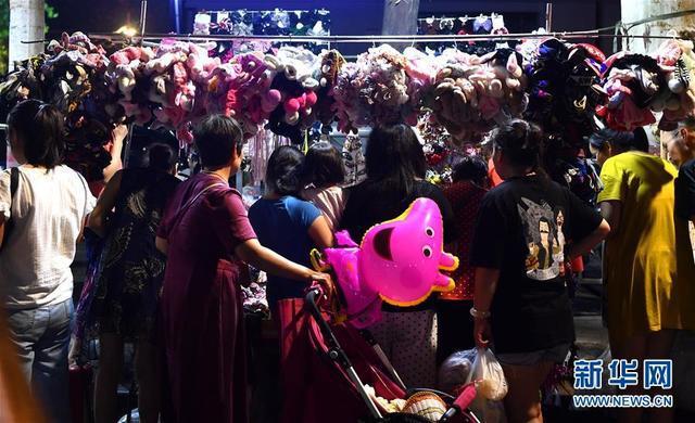 人們在河南省鄭州市健康路夜市上挑選商品(8月7日攝)。新華社記者李嘉南攝