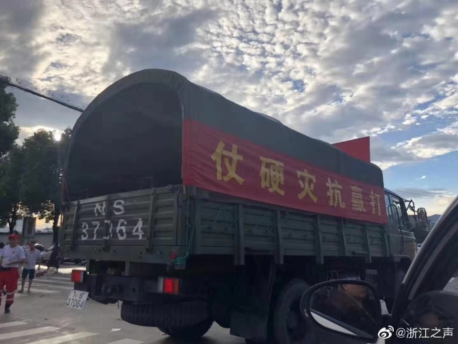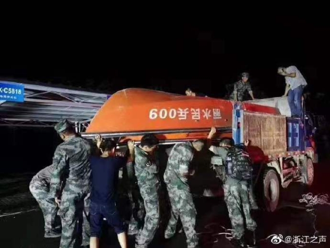 19點(diǎn)30分,金華市武警支隊(duì)一百多名官兵從金華市區(qū)開(kāi)拔,緊急馳援臨海。另外,寧海、余姚兩地的民兵應(yīng)急分隊(duì),攜20艘沖鋒舟馳援臺(tái)州臨海。