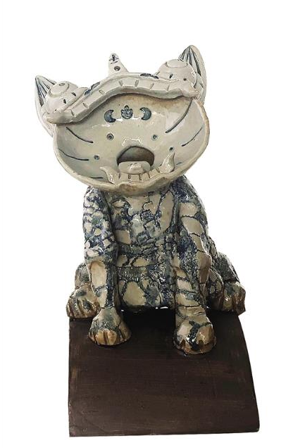 瓦貓作為云南的一種建筑文化,過去常常被作為“鎮(zhèn)宅神獸”被放置于瓦房之上,因為形象頗似家貓而得名?!暗请S著老房子逐漸消失在高樓大廈中,瓦貓也逐漸淡出了人們的視線?!崩钇颊f,在上學(xué)期間接觸了瓦貓的制作后產(chǎn)生了濃厚的興趣。但傳統(tǒng)的瓦貓制作粗糙,缺少藝術(shù)價值,李萍在保留傳統(tǒng)瓦貓大嘴巴、大眼睛的基礎(chǔ)上,用現(xiàn)代雕塑的手法,對瓦貓的骨骼形態(tài)、造型進行了優(yōu)化和創(chuàng)新,讓瓦貓形象更符合現(xiàn)代人的審美。
