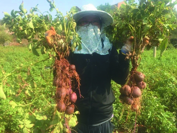 近年來,口感好、糯性好、洋芋風(fēng)味濃的丘北縣舍得小烏芋聲名鵲起。然而,品種退化嚴(yán)重、畝產(chǎn)量低等問題嚴(yán)重制約著小烏芋產(chǎn)業(yè)的發(fā)展。小烏芋在舍得種植年限久遠(yuǎn),種性退化嚴(yán)重,對馬鈴薯晚疫病的抗病性幾乎為零,當(dāng)?shù)胤N薯來源多為自留種,自給自足產(chǎn)量低,平均畝產(chǎn)量僅在500公斤左右,很難滿足市場需求,導(dǎo)致舍得烏芋產(chǎn)業(yè)做不大,群眾增收不理想。2015年,以高建莉高級農(nóng)藝師為組長的馬鈴薯課題組,對舍得烏芋進(jìn)行脫毒,并生產(chǎn)2萬粒原原種進(jìn)行種薯擴繁。隨后的幾年,課題組在品種優(yōu)化、高產(chǎn)栽培技術(shù)、綠色防控技術(shù)和烏芋的內(nèi)在品質(zhì)等方面開展全方位研究,著力破解產(chǎn)業(yè)發(fā)展中的技術(shù)難題。最終繁殖出高產(chǎn)、抗病的優(yōu)良種薯。下一步,將優(yōu)良種薯進(jìn)行大面積推廣,以造福當(dāng)?shù)厝罕?。(作者高建莉?/p>