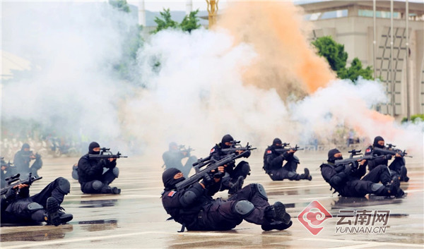8月9日上午10時,楚雄州公安機關第十場“踐行新使命、忠誠保大慶”誓師大會暨掃黑除惡專項斗爭實戰(zhàn)演練活動在元謀縣舉行。