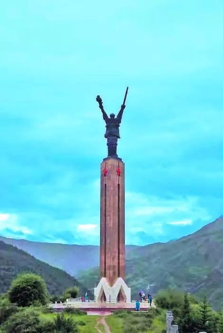 ↑位于四川省松潘縣川主寺鎮(zhèn)元寶山上的紅軍長征紀念碑。 魏永剛攝
