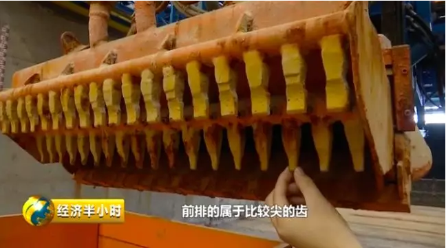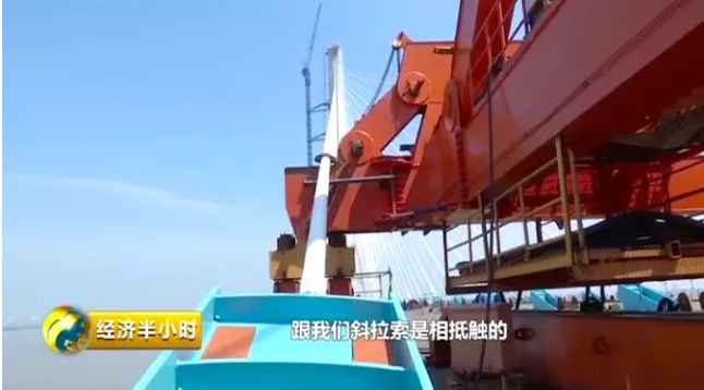 在船甲板上,《經(jīng)濟半小時》記者看到了大量的設備,黑顏色的耙臂用來在海底取泥,黃色吊車吊重40噸,前后跨度能達到55米,所用的鋼絲比較特殊,自身就有一個內部的力,確保在吊重物時,不會旋轉打結。