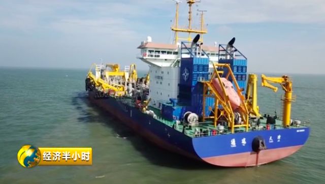 1800噸架梁吊機,好比是空中架設鋼梁的“大力士”。而自航式耙吸挖泥船,就是海上挖泥的“大力士”,在90米深的海水下自動挖泥挖沙,動力就靠輪船本身的動力,是我國自主研制的具有世界先進水平的又一項”大國重器”。