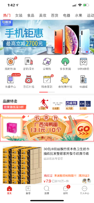 14日“秒殺萬人團(tuán)”推出了爆款農(nóng)產(chǎn)品廣西北海海鴨蛋、以及平臺大幅補(bǔ)貼后低于成本價的東北大米,截至當(dāng)日13點(diǎn),1.6萬單鴨蛋即售罄,大米也售出1.4萬單。據(jù)悉,農(nóng)貨節(jié)此后將陸續(xù)推出特侖蘇牛奶、若羌灰棗、寧夏枸杞、貴州紅心獼猴桃、會理石榴、廣西百香果等秒殺萬人團(tuán)。