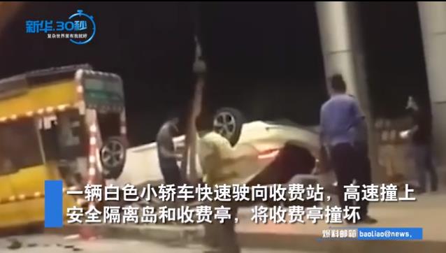 事故造成白色轎車嚴(yán)重受損,收費(fèi)站設(shè)施損壞,收費(fèi)員重傷送醫(yī)院緊急救治。