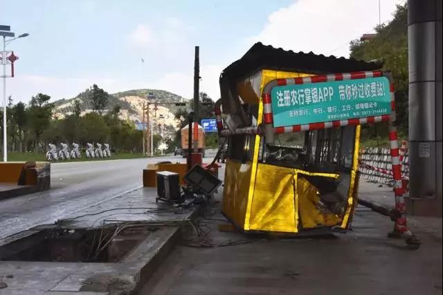 8月12日,云南個(gè)舊一男子凌晨駕駛白色轎車快速駛向錫都隧道收費(fèi)站,瞬間撞翻安全隔離島和收費(fèi)站。