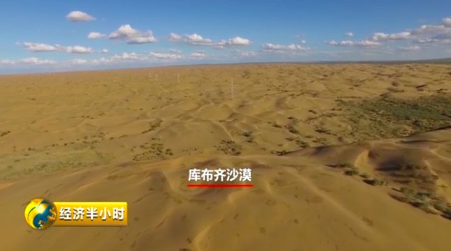 2019年8月初,《經(jīng)濟半小時》記者在庫布齊沙漠發(fā)現(xiàn),庫布齊沙漠有三分之一的面積已經(jīng)從荒漠變成綠洲。不僅如此,在沙漠腹地,一座占地五萬畝的光伏電站格外顯眼。
