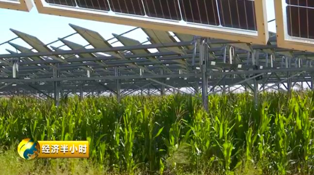 光伏板下種植的玉米