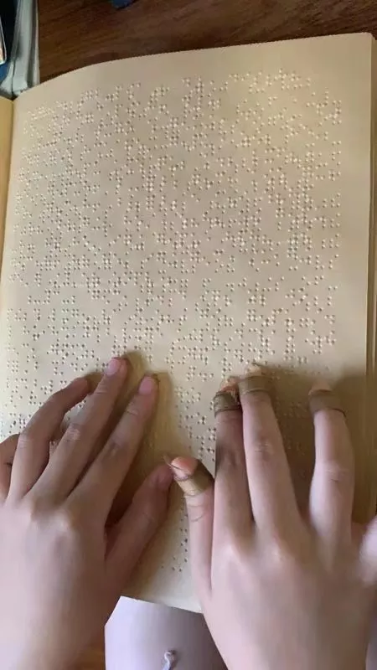 盲人學(xué)習(xí)琵琶有很多困難,比如艱澀難懂的樂理知識,別人一眼看過,小雅祺卻需要用雙手一起,一個字一個字地“觸摸”過去。