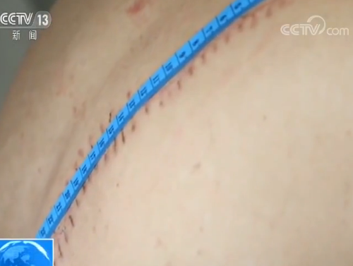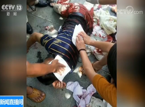 福建漳平市中心醫(yī)院副院長 李文?。寒敃r渾身都是血!擔架上面都是血跡,而且生命癥血壓已經(jīng)往下掉、心率非???,出現(xiàn)了休克表現(xiàn)。背部傷口有23-25公分左右,頸部這個傷口也大,起碼有7、8公分,如果再往前面延伸一點點,頸內(nèi)靜脈、動脈一損傷,那可能就來不及。