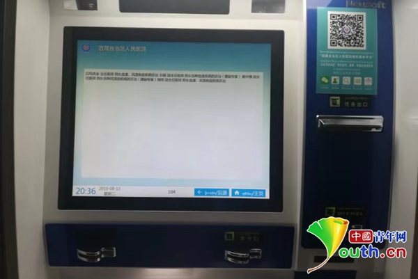 西藏自治區(qū)人民醫(yī)院二樓內(nèi)科區(qū)多功能自助查詢機的信息查詢窗口,還保存著周南的信息。中國青年網(wǎng)記者 張瑞玲 攝