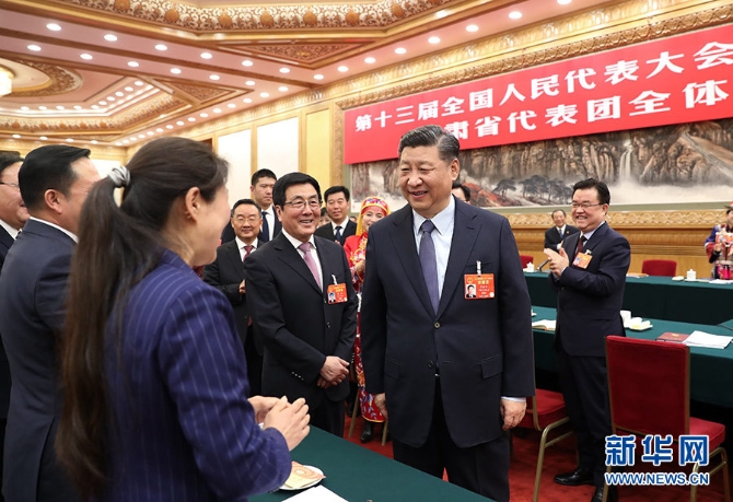 來到全國人代會甘肅代表團,對脫貧攻堅響鼓重錘