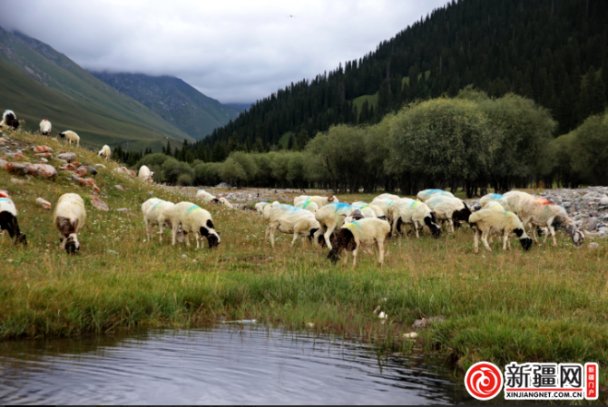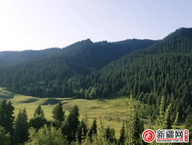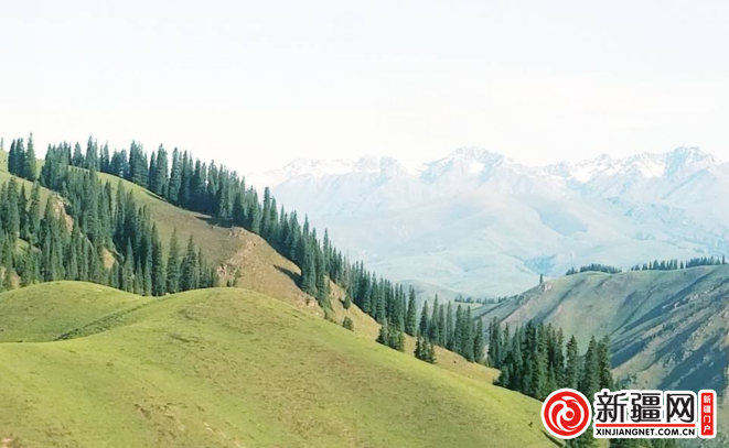 遠(yuǎn)望云杉高聳入云,腳下綠草牛羊成群,站在獨(dú)庫路邊遠(yuǎn)眺鞏乃斯,人與自然和諧相處,森林與草原融為一體。