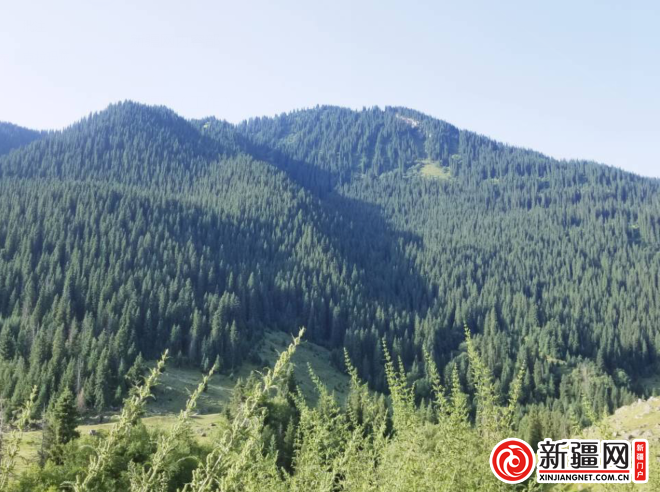 盛夏的鞏乃斯景區(qū)林木蔥蘢,綠草茵茵、河水清清,山花爛漫,清爽宜人……一棵棵挺拔的云杉,矗立不倒,襯托出鞏乃斯天更高、云更白、地更廣。