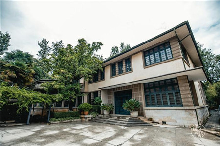 宅院由一幢西式二層樓房建筑和一排平房組成,庭院寬闊。樓房坐北向南,占地面積745平方米,建筑面積1300平方米。主體建筑占地577.6平方米,磚木結(jié)構(gòu),平瓦坡頂,平面布局為不規(guī)則長(zhǎng)方形,四面圍合,中設(shè)天井。南部西側(cè)凸出半圓形客廳,上為露臺(tái)。樓內(nèi)布局大氣而不失精巧,房間眾多,開(kāi)窗寬大,功能完善,裝修考究。宅院西側(cè)即為翠湖,環(huán)境優(yōu)美。