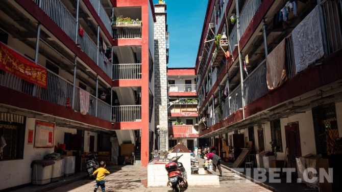 46歲的次德吉已經(jīng)在這個大院里生活了30多年,她聽父母講起現(xiàn)在的甲巴康桑大院在1959年之前是一所專供貴族上學的學校,普通人是禁止入內(nèi)的,誰也不知道緊閉的大門里究竟是什么樣子。1959年西藏民主改革以后,百萬農(nóng)奴翻身得了解放,分到了牲畜、分到了地、也分到了房,甲巴康桑大院緊閉的大門從那時開始敞開了,次德吉的父母就是那時候入住了大院。