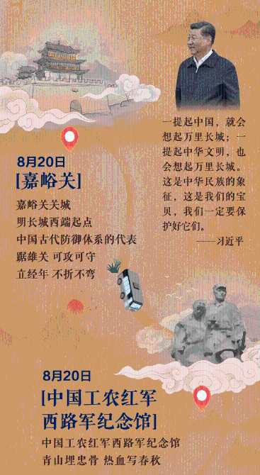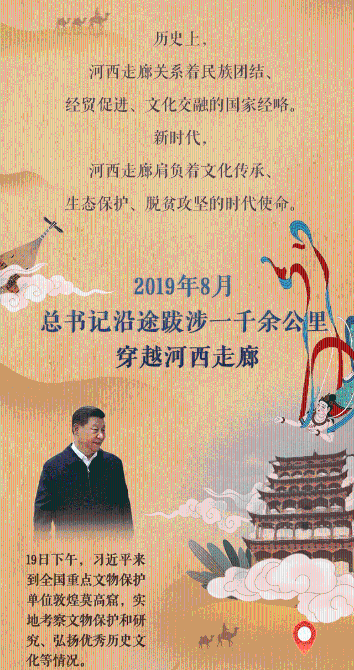 8月19日,習(xí)近平抵達(dá)甘肅調(diào)研。他風(fēng)塵仆仆、星夜兼程,沿河西走廊,自西向東,先后來到敦煌,嘉峪關(guān),張掖,武威,蘭州等地,看文物保護(hù),談文化傳承,察生態(tài)建設(shè),進(jìn)移民新村,話百姓生活。