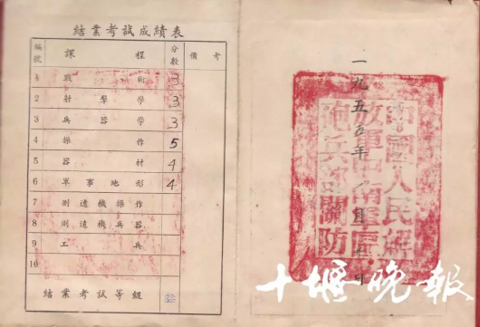 張文魁學(xué)習(xí)修理大炮時(shí)的考試成績(jī)表