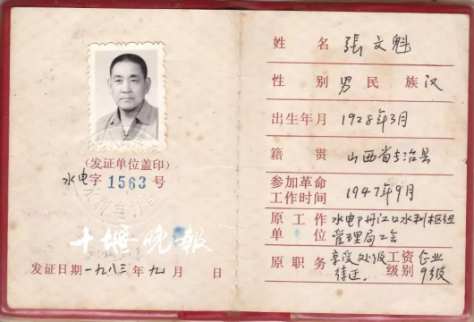 在張文魁的一再堅(jiān)持下,1966年底,單位安排他負(fù)責(zé)丹江口水利樞紐工程局大禮堂的管理工作,直至1983年9月光榮離休。