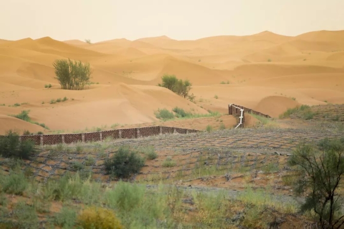 驚奇的是第二天這幾個(gè)字沒有被夜間流動(dòng)的沙濤所淹沒依然挺立在沙丘之上由此給治沙帶來了新的靈感