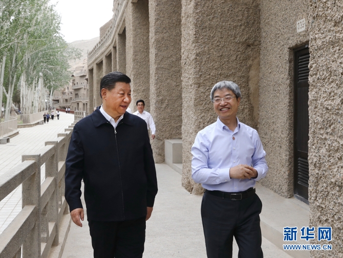 習(xí)近平在敦煌研究院同有關(guān)專家、學(xué)者和文化單位代表座談并發(fā)表重要講話。