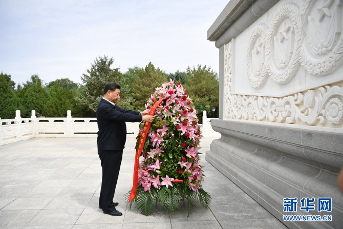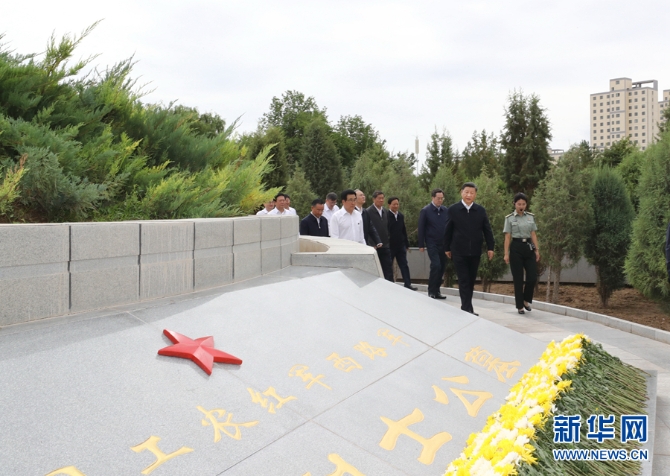 習(xí)近平來到張掖市高臺縣,瞻仰中國工農(nóng)紅軍西路軍紀(jì)念碑,向革命先烈敬獻(xiàn)花籃。
