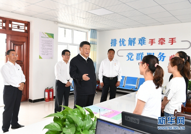 習(xí)近平在武威市古浪縣黃花灘生態(tài)移民區(qū)富民新村黨群服務(wù)中心考察。