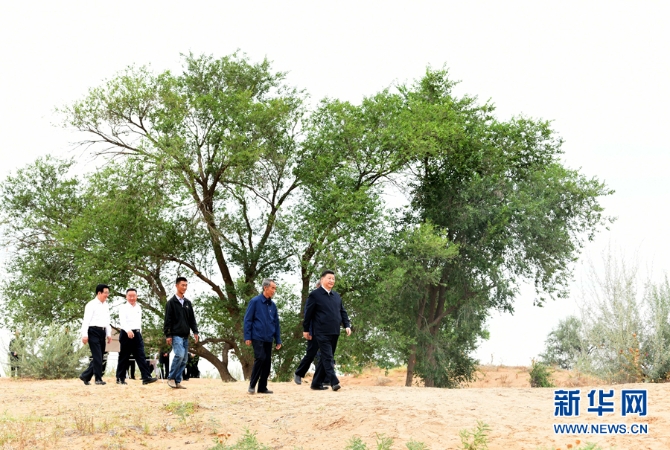 隨后,習(xí)近平乘車前往八步沙林場。林場地處河西走廊東端、騰格里沙漠南緣。