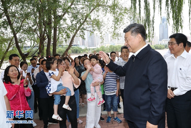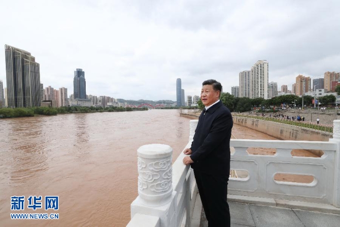 習(xí)近平在蘭州市黃河治理蘭鐵泵站項目點,沿步道察看黃河兩岸生態(tài)修復(fù)和景觀建設(shè)情況。