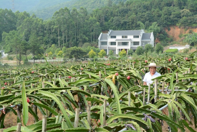 福建省福清市一名農(nóng)戶走在有機(jī)火龍果園內(nèi)。隔壁養(yǎng)豬場(chǎng)排放的沼液通過管道直供火龍果園使用,不僅實(shí)現(xiàn)全程零排放,還為果園提供了上好的有機(jī)肥。新華社記者 林超/攝