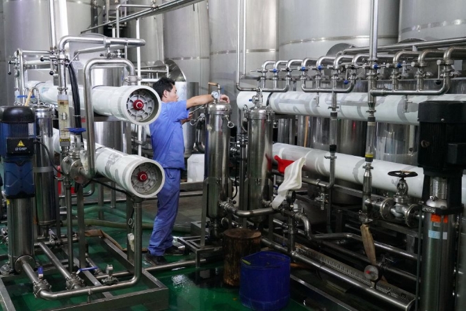 福建明圣生物制品有限公司工人在操作機(jī)器生產(chǎn)利用雞血制成的蛋白飼料。新華社記者 林善傳/攝