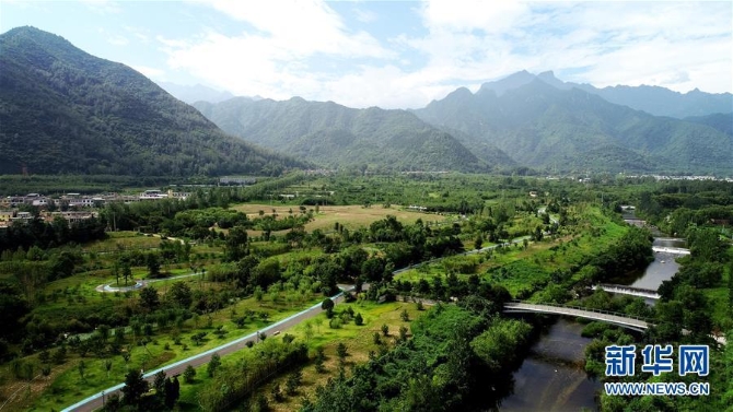 西安市長安區(qū)秦嶺違建別墅“群賢別業(yè)”拆除后建設(shè)的秦嶺和諧森林公園(7月26日無人機(jī)拍攝)。新華社記者 劉瀟 攝
