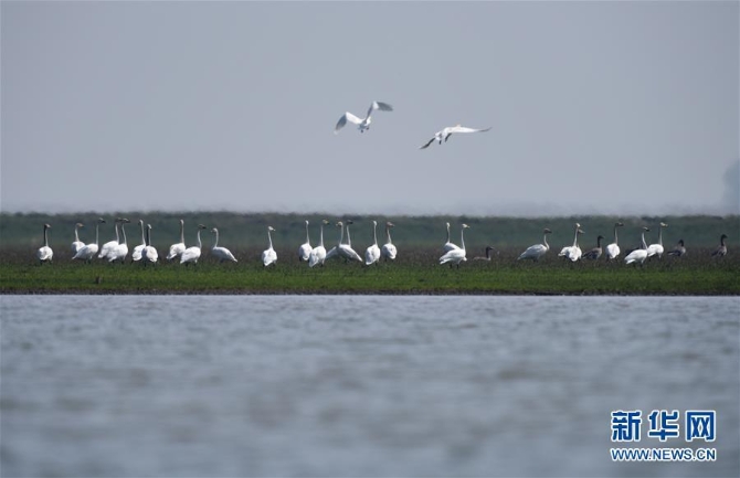一群小天鵝在東洞庭湖國家級自然保護(hù)區(qū)內(nèi)聚集(2018年2月26日攝)。近年來,湖南自上而下發(fā)動省、市、縣、鄉(xiāng)、村五級干部打“洞庭湖生態(tài)環(huán)境保衛(wèi)戰(zhàn)”。新華社記者 李尕 攝