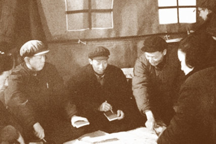 老領(lǐng)導(dǎo)祝麟芳(右二)與原公浦(左一)等在一起進(jìn)行技術(shù)攻關(guān)。資料圖