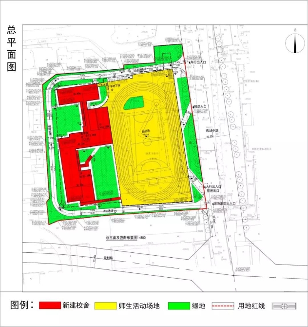 項目在地塊內(nèi)規(guī)劃布置一棟教學綜合樓(1-4層為教學用房、5-6層為教師辦公及多功能用房),用地東側為師生活動場地。
