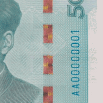 正面中部面額數(shù)字調(diào)整為光彩光變面額數(shù)字“50”,左下角光變油墨面額數(shù)字調(diào)整為膠印對(duì)印圖案,右側(cè)增加動(dòng)感光變鏤空開窗安全線和豎號(hào)碼。背面取消全息磁性開窗安全線。