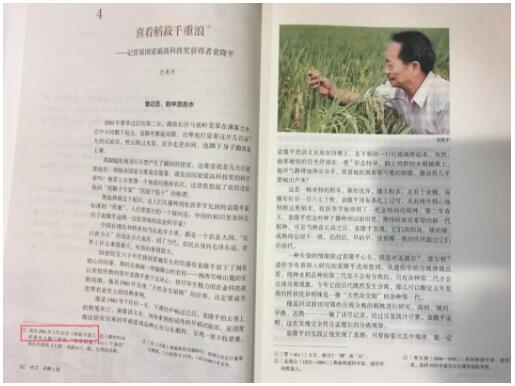 此外,《喜看稻菽千重浪——記首屆國(guó)家最高科技獎(jiǎng)獲得者袁隆平》《青蒿素:人類征服疾病的一小步》《實(shí)踐是檢驗(yàn)真理的唯一標(biāo)準(zhǔn)》等反映社會(huì)主義建設(shè)和改革開放時(shí)期的作品也出現(xiàn)在教材目錄中。其中,“袁隆平”一文選自2001年2月22日《科技日?qǐng)?bào)》。