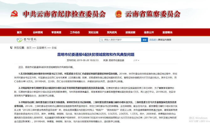 記者8月28日從云南省紀委監(jiān)委網(wǎng)站獲悉,近日,昆明市紀委通報6起扶貧領域腐敗和作風典型問題。
