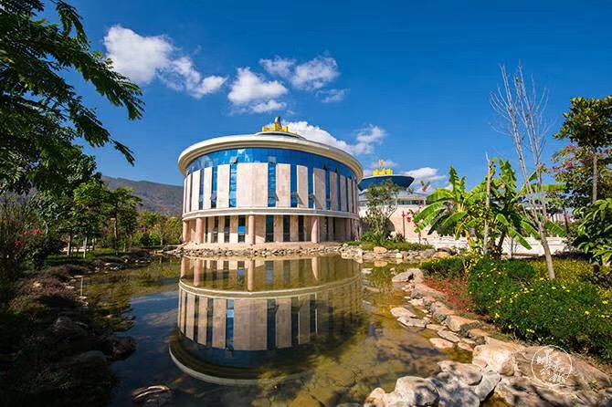 施甸縣圖書館在青牛白馬廣場旁,遠(yuǎn)遠(yuǎn)看上去,圖書館的外觀像一座“蒙古包”,走進(jìn)一看,畫風(fēng)卻截然不同,赫然出現(xiàn)在圖書館正中間的“為中華之崛起而讀書”的名言,館內(nèi)共有三層,一排排書架上,整齊地擺放著各品類的書目。參觀當(dāng)天,正值下午,趁著閑適時光,兩位老人安靜地在館內(nèi)讀書看報。
