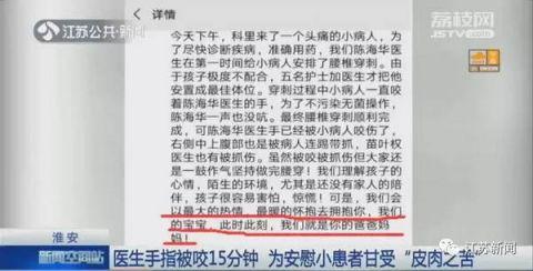 “為了操作能夠順利進行下去,我沒有過分地去阻撓。大概有15分鐘左右,我的手指一直被他咬著?!标惡HA說。
